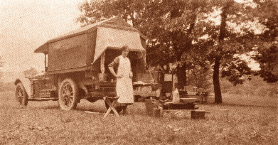 A 1916 Hupmobile touring car was outfitted with a sleeping compartment so Joe Sunnen and his wife, Cornelia (pictured) could inexpensively travel the Midwest selling his new invention, the adjustable valve lifter hand tool.